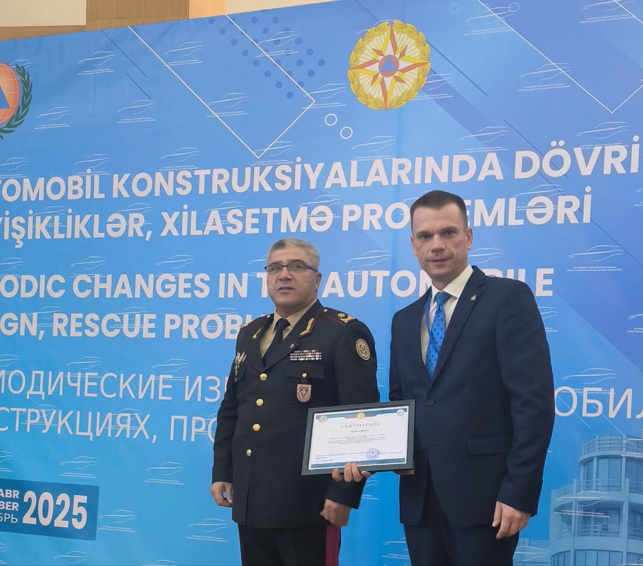 Делегация Сибирской пожарно-спасательной академии ГПС МЧС России во главе с начальником генерал-майором внутренней службы Иваном Сергеевым приняла активное участие в IV Международной научно-практической конференции «Периодические изменения в автомобильных конструкциях, проблемы спасения». Мероприятие состоялось 1 октября в Академии МЧС Азербайджана в Баку.